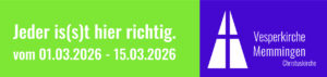 Unter dem Motto „Jeder is(s)t hier richtig – ZUSAMMEN.HALTEN“ öffnet die Vesperkirche Memmingen vom 1. – 15. März ihre Tore. Vesperkirche heißt: Zwei Wochen lang Mittagessen, Kulturprogramm, geistliche Angebote und viel Gemeinschaft.